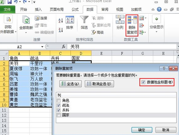 - 选择【删除重复项】