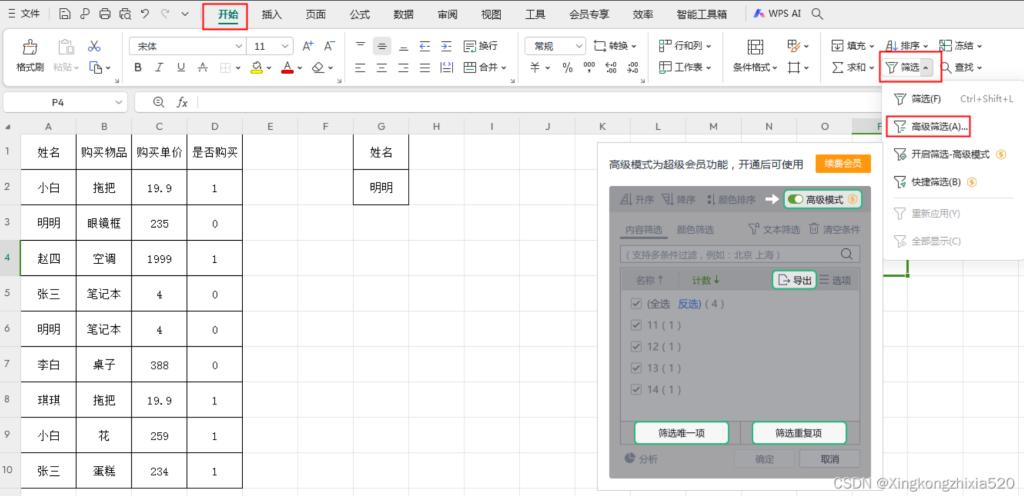 三、使用高级筛选功能去重(不破坏原数据)